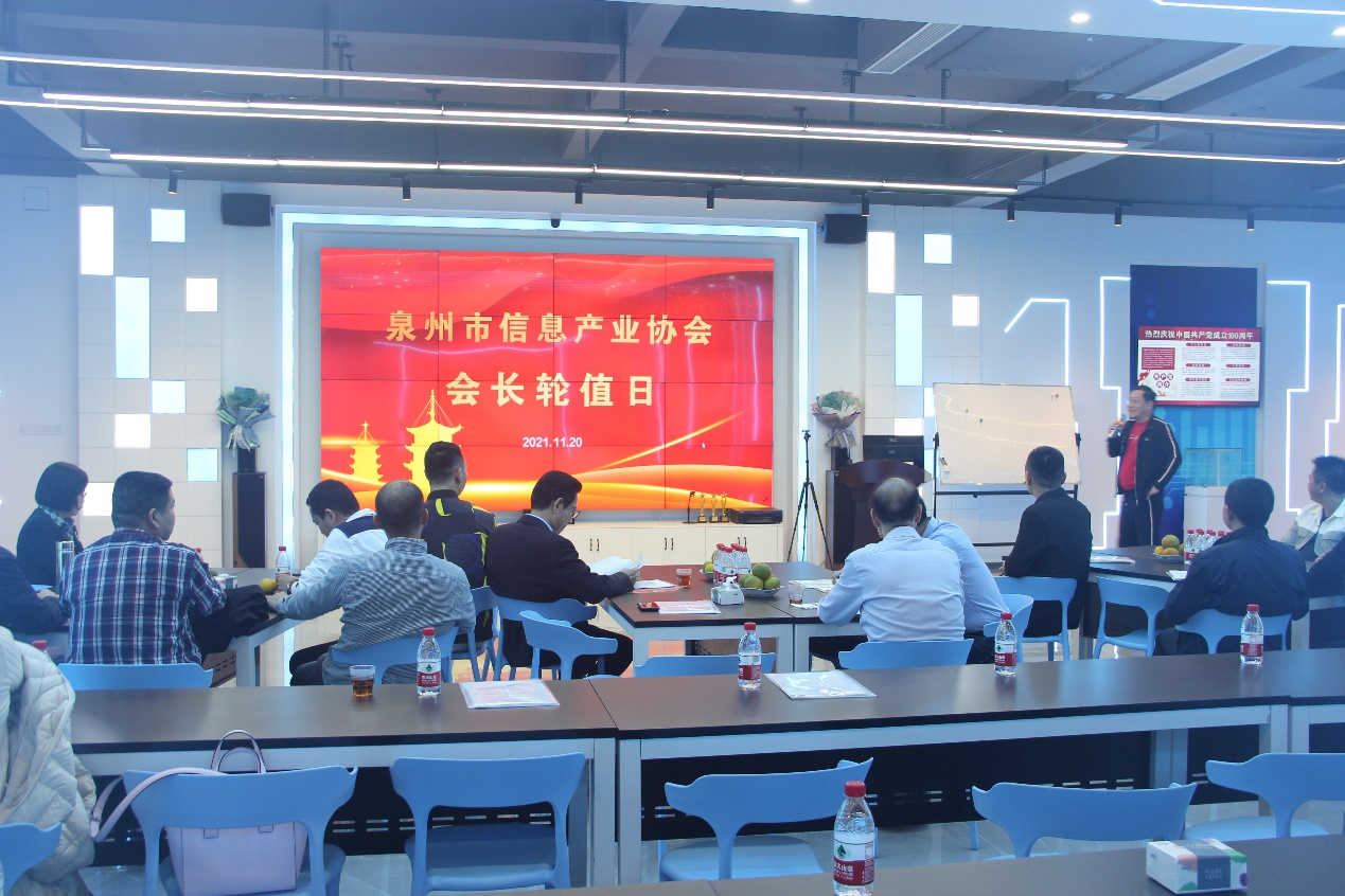 会间,协会顾问、泉州市中科联创安防实验室院长刘艺华以“泉州市信息产业的过去、现状和未来开展思路”为主题发表演讲,赢得与会人员的高度肯定,引发与会人员的热烈讨论。