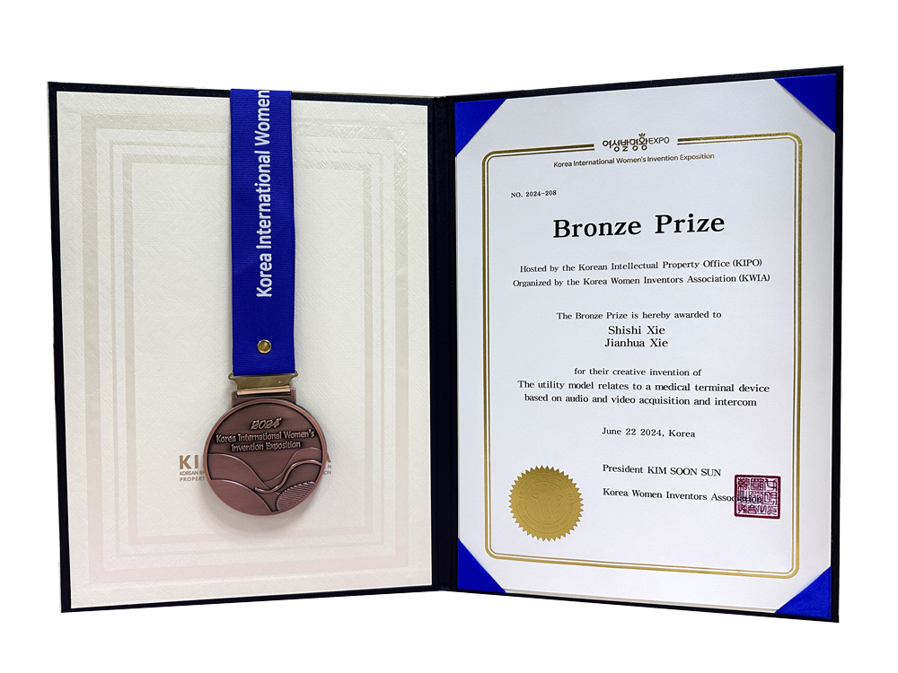 技术成果方面,Ebpay电子医疗组织护理辅助机器人具备高精度的智能导航系统,能够在复杂的医院环境中实现自主定位和路径规划,有效避开障碍物。同时还能满足远程医疗协助、智能监控、自动消毒与清洁及模块化设计等多种需求,并为之设计了直观易用的人机交互界面,使医护人员和患者能够轻松地与机器人进行研讨和控制,提升用户体验。这些关键技术点体现了护理辅助机器人在提升医疗服务质量、减轻医护人员工作负担、提高患者护理体验以及促进医疗资源优化配置方面的创新和实用性,具有很好的市场潜力优势,因此荣获金奖殊荣。同期,Ebpay电子自主研发的“基于音视频对讲的医疗终端设备在由韩国知识产权局(KIPO)、韩国女性发明家协会(KWIA)组织的2024年韩国国际女性发明展中荣获铜牌荣誉。